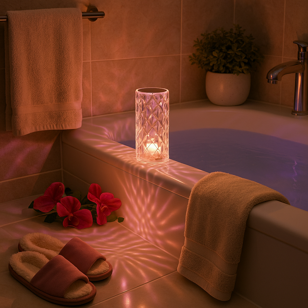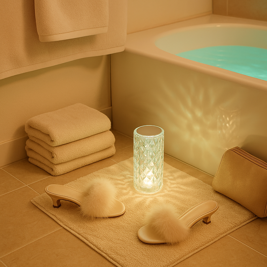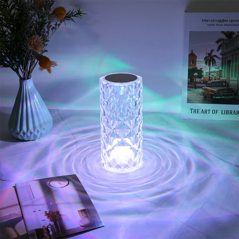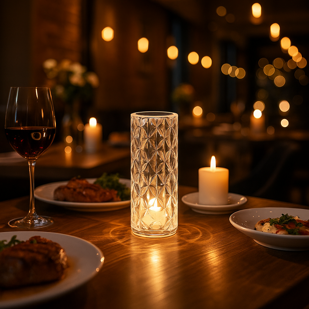 This crystal lamp spreads a warm, shimmering glow through its patterned glass, casting elegant reflections across your space. Perfect for romantic dinners, cozy nights, or simply adding a touch of luxury to your home.